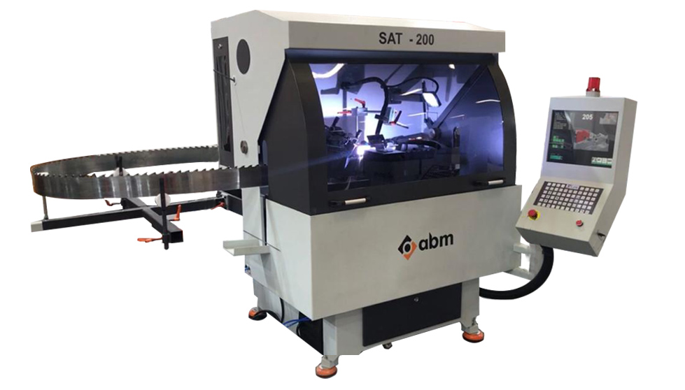 SAT-200 Stellite Tipping Machine is an ideal machine for full automatic stellite tipping of band, frame and circular saw blades. Patented special stellite tipping system ensures a variable joining of stellite to saw blade body than any system worldwide. This new system minimizes the side and profile grinding times. Tooth molds are used for the tipping process, ease of use and minimized welding time for band saw producers, regrinding shops and also end-users. From the worldwide creator of new grinding technologies, thanks to the CNC technology various parameters can be adjusted independantly from the control panel. For heavy duty saws up to 320mm band saw width, this model is recommended to customers. The tipping time of the band saw with a 40mm tooth pitch of 10 meters at optimal speeds is an average of 1 hour, including annealing.
