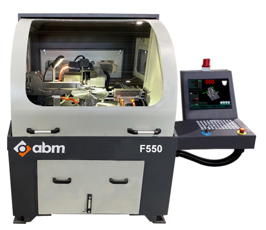 F550 Ø550mm'ye kadar elmas uçlu daire testerelerdeki tüm standart diş formlarının iç bilemesini tek seferde yapabilen hızlı, CNC kontrollü otomatik CNC daire testere iç bileme makinasıdır.